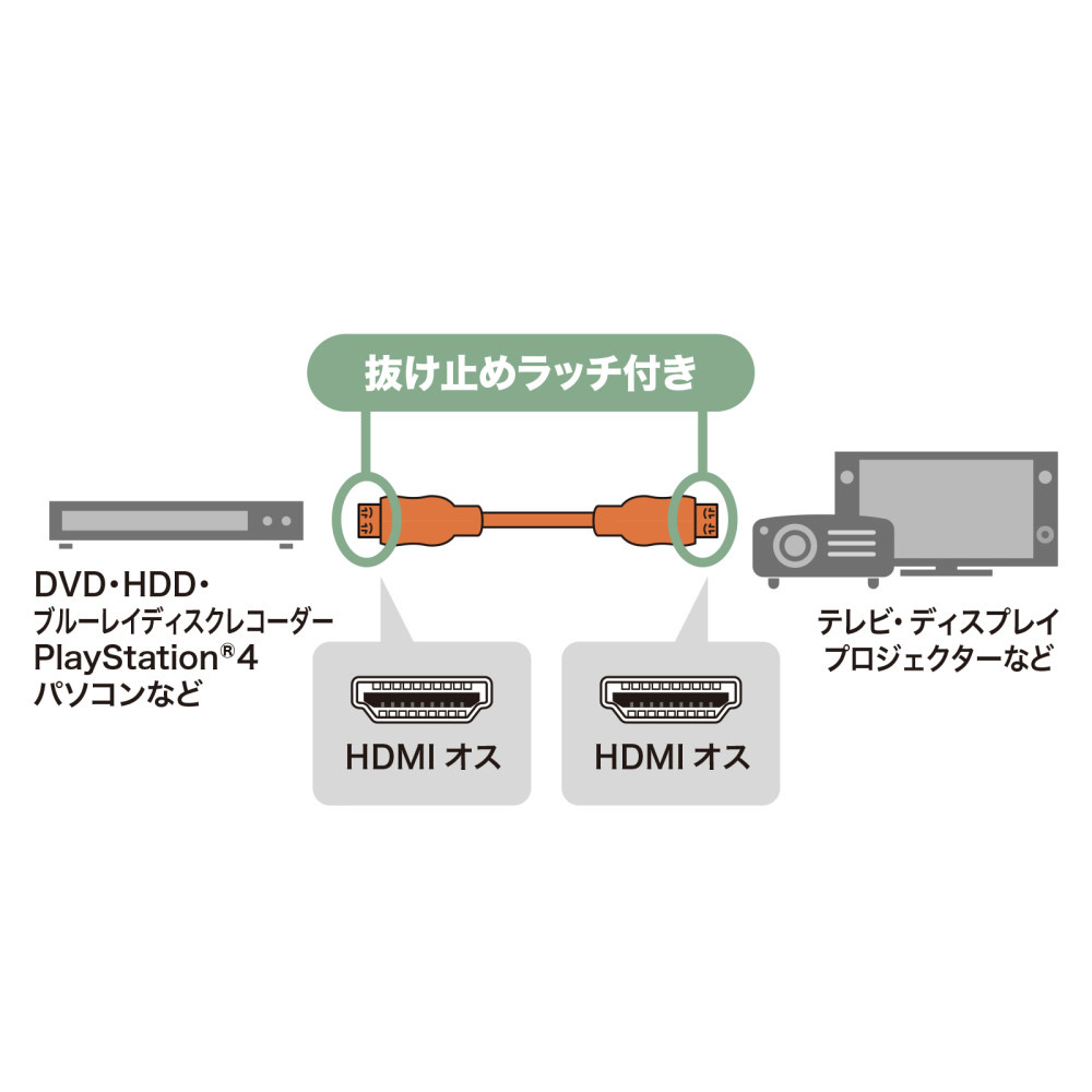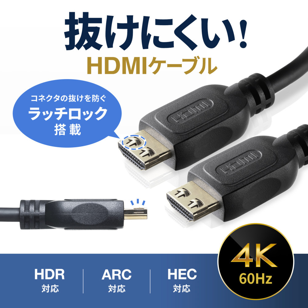 抜けにくいラッチロック付HDMIケーブル