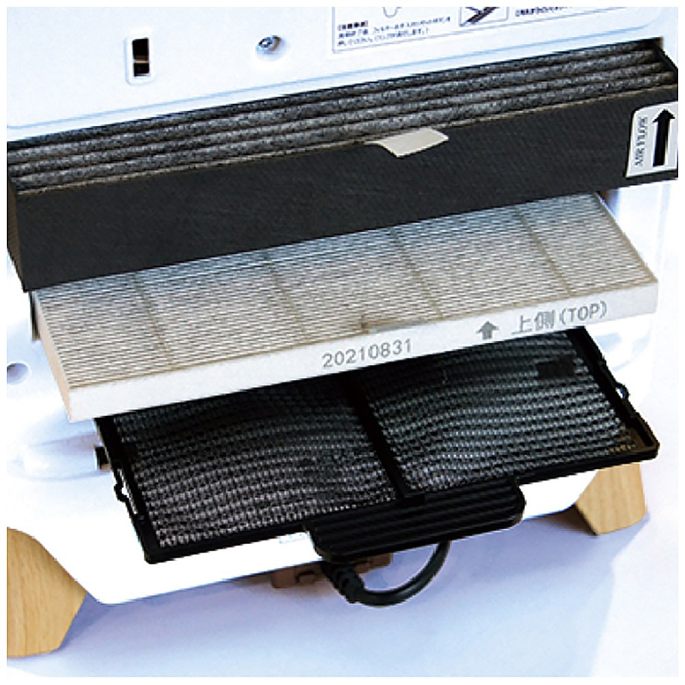 フィルターに菌やウイルス、臭いとなるガス成分を「吸着」させるのみで、菌やウイルスはフィルター上で生きた状態です。