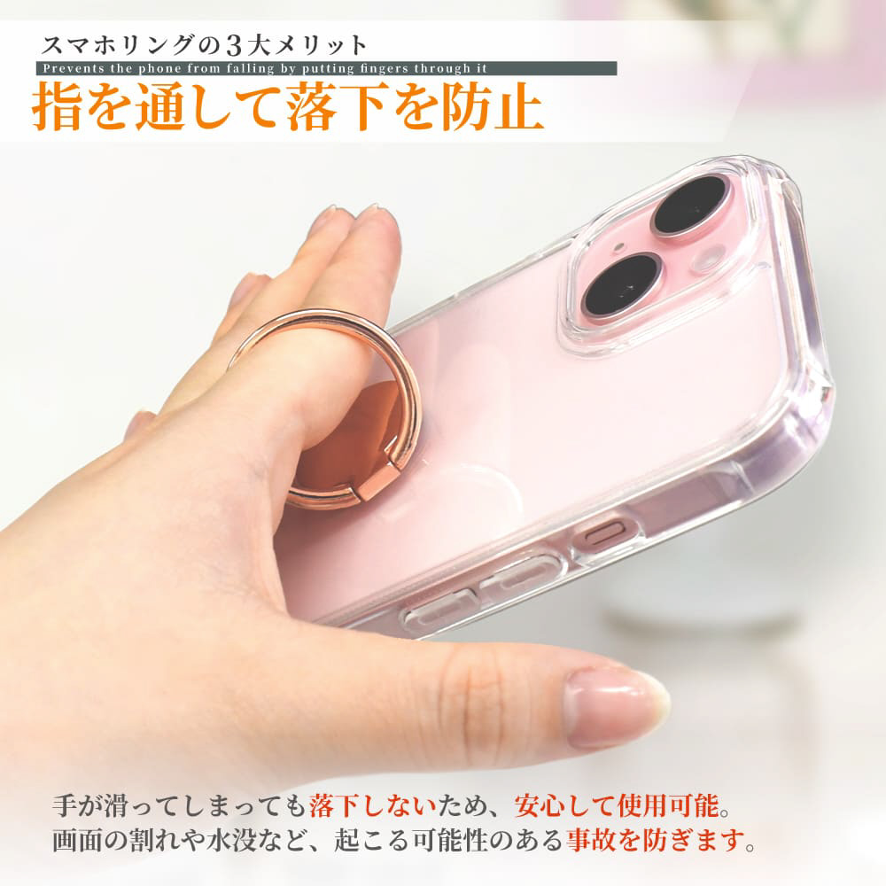スマートフォンやケースの素材・重量により貼り付けの強度が弱まる可能性がございます。