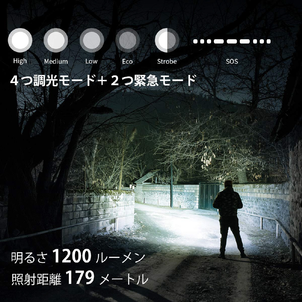 【用途に合わせて6つモード】用途に合わせてWUBEN C3懐中電灯は4つの調光モード付いています。エンド部分のボダンを押して、HIGH-MID-LOW-ECOモードを順番に切り替わります。また、ボダンを連続2回半押してストロボ(STROBE)に入ります。連続3回半押してSOSモードに転換します。