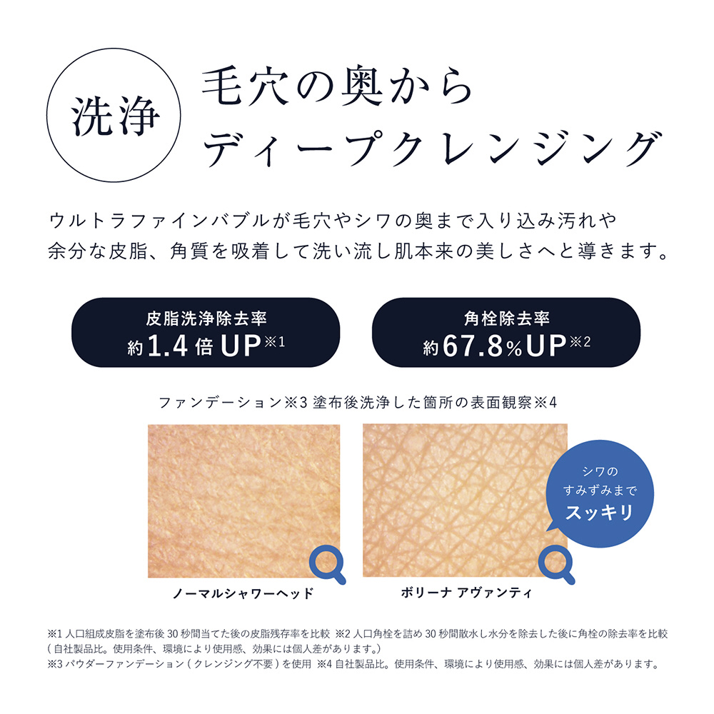 ウルトラファインバブルが毛穴やシワの奥まで入り込み汚れや余分な皮脂、角質を吸着して洗い流し肌本来の美しさへと導きます。
