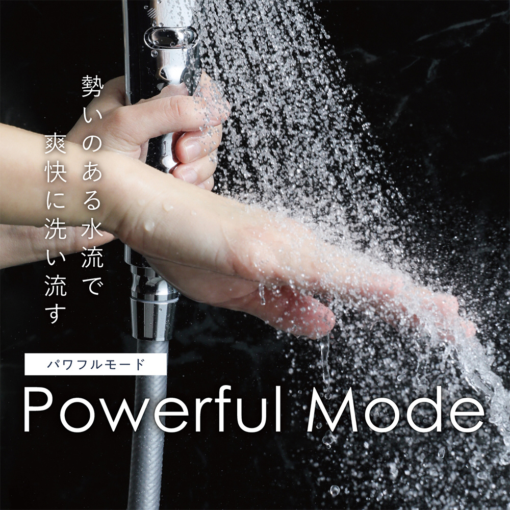 ●爽快な浴び心地の『パワフルモード』:勢いよく浴びたい時、浴室掃除で流したい時に
