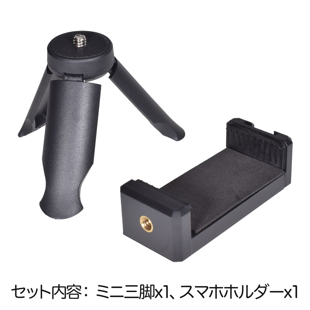 ●セット内容:ミニ三脚 x 1、スマホホルダー x 1