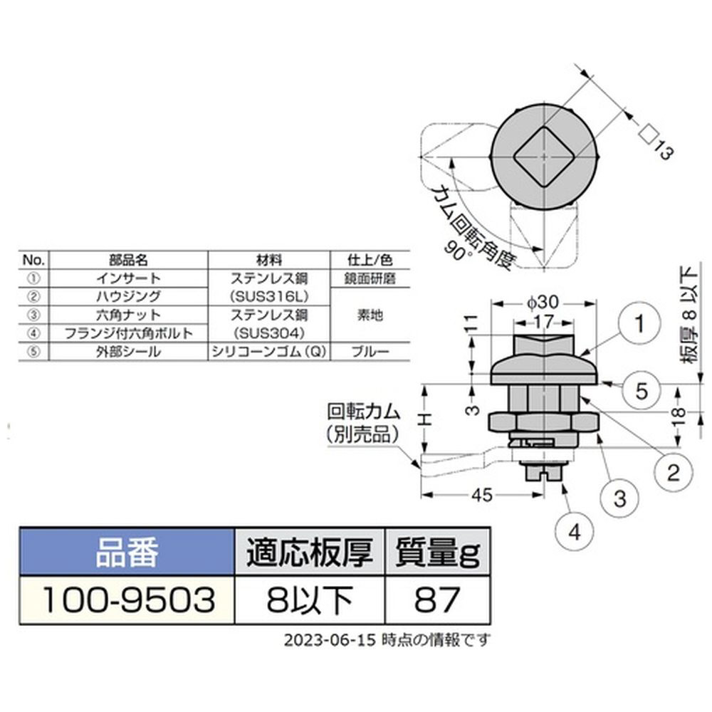 100−9503ステンレス鋼製ハイジェニッククオータータ