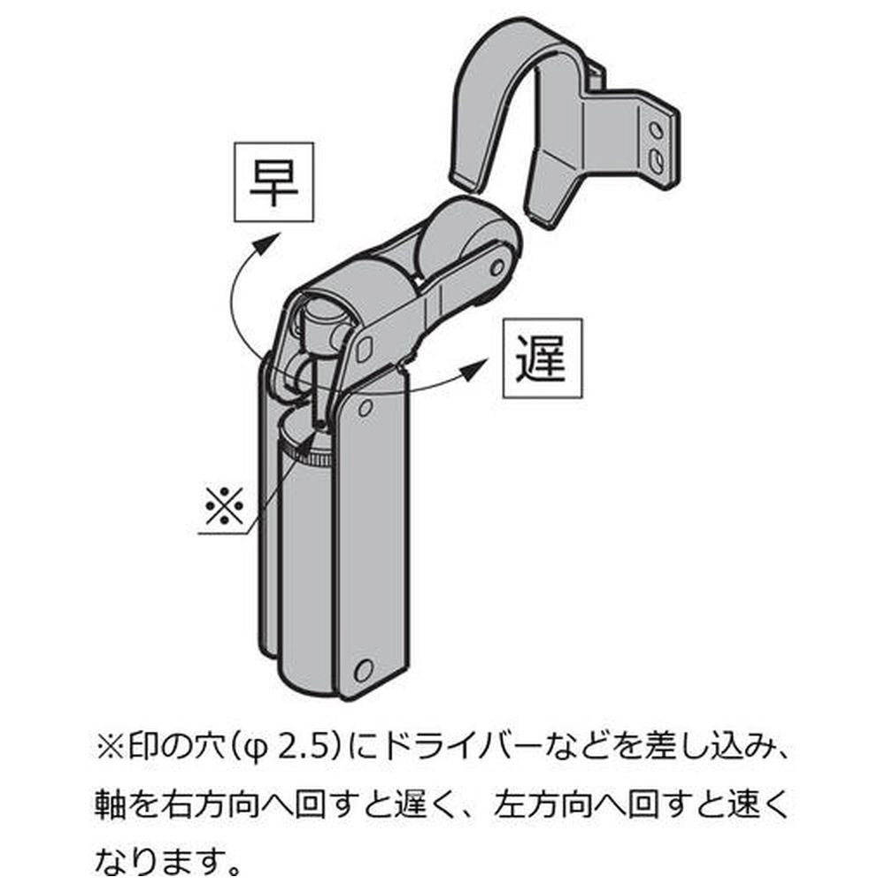 ドアが閉まる際、約10°の角度で作動してドアにブレーキをかけます。