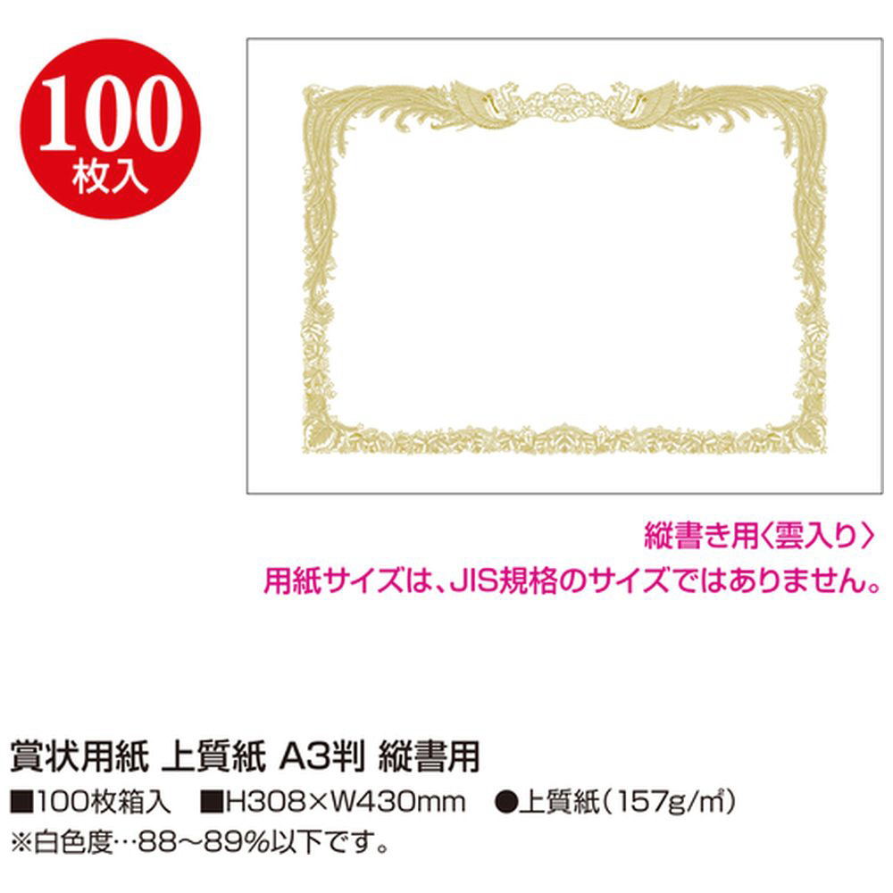 賞状用紙 A3判 縦書用 上質紙 10-5040