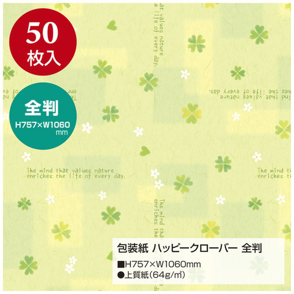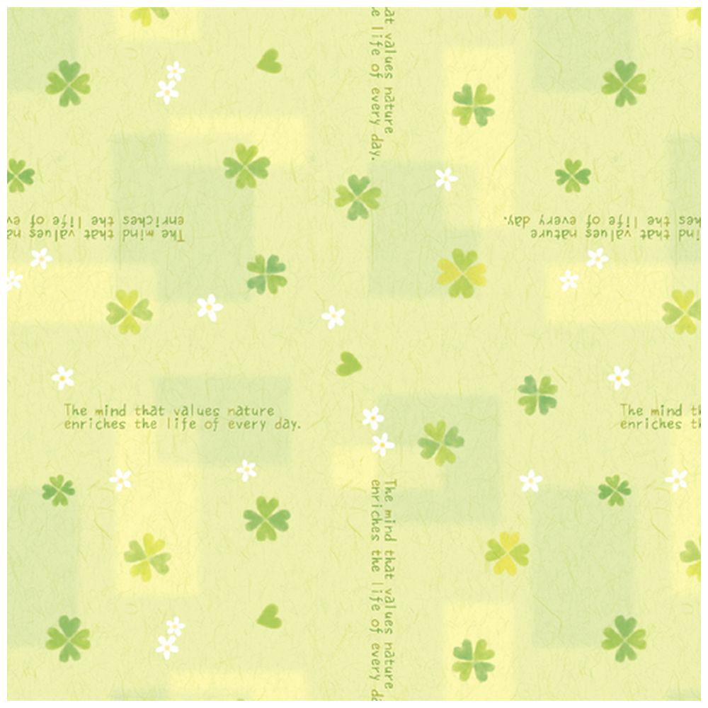 ファンシーなグリーン柄の包装紙です。小さなクローバーをランダムに配置。