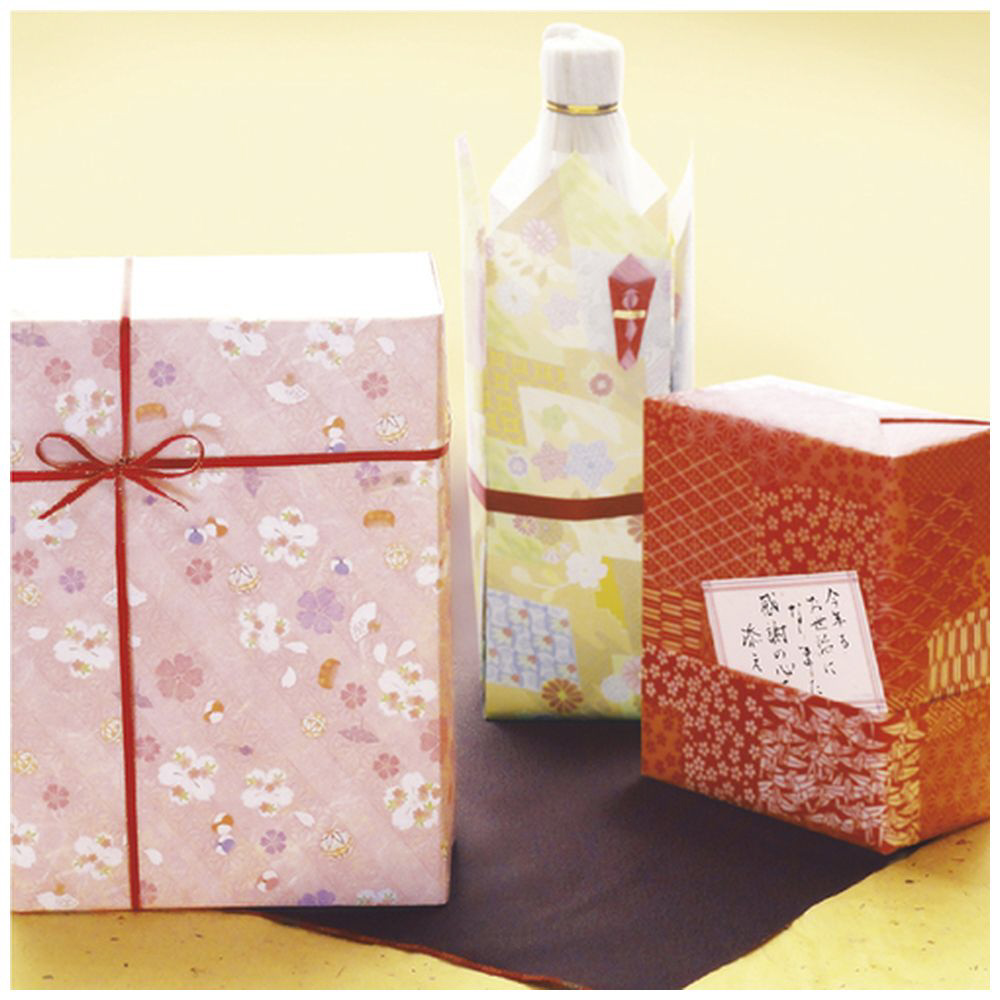 ■可愛い和風柄の包装紙です。和小物をモチーフにピンクでまとめました。