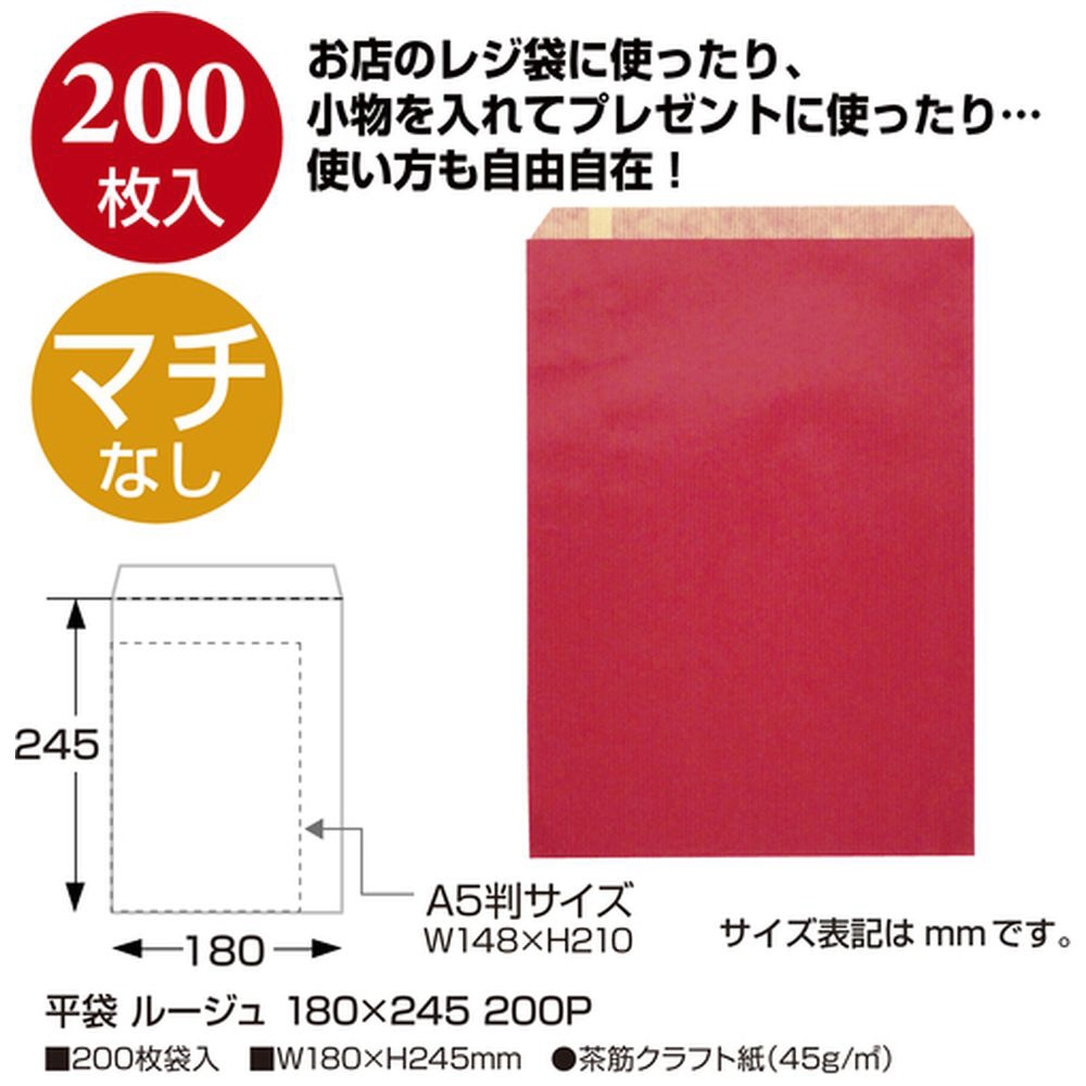 ギフトバッグ 平袋 200枚入 [180×245mm] ルージュ 50-1506