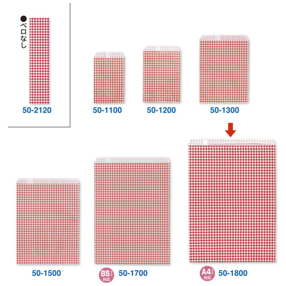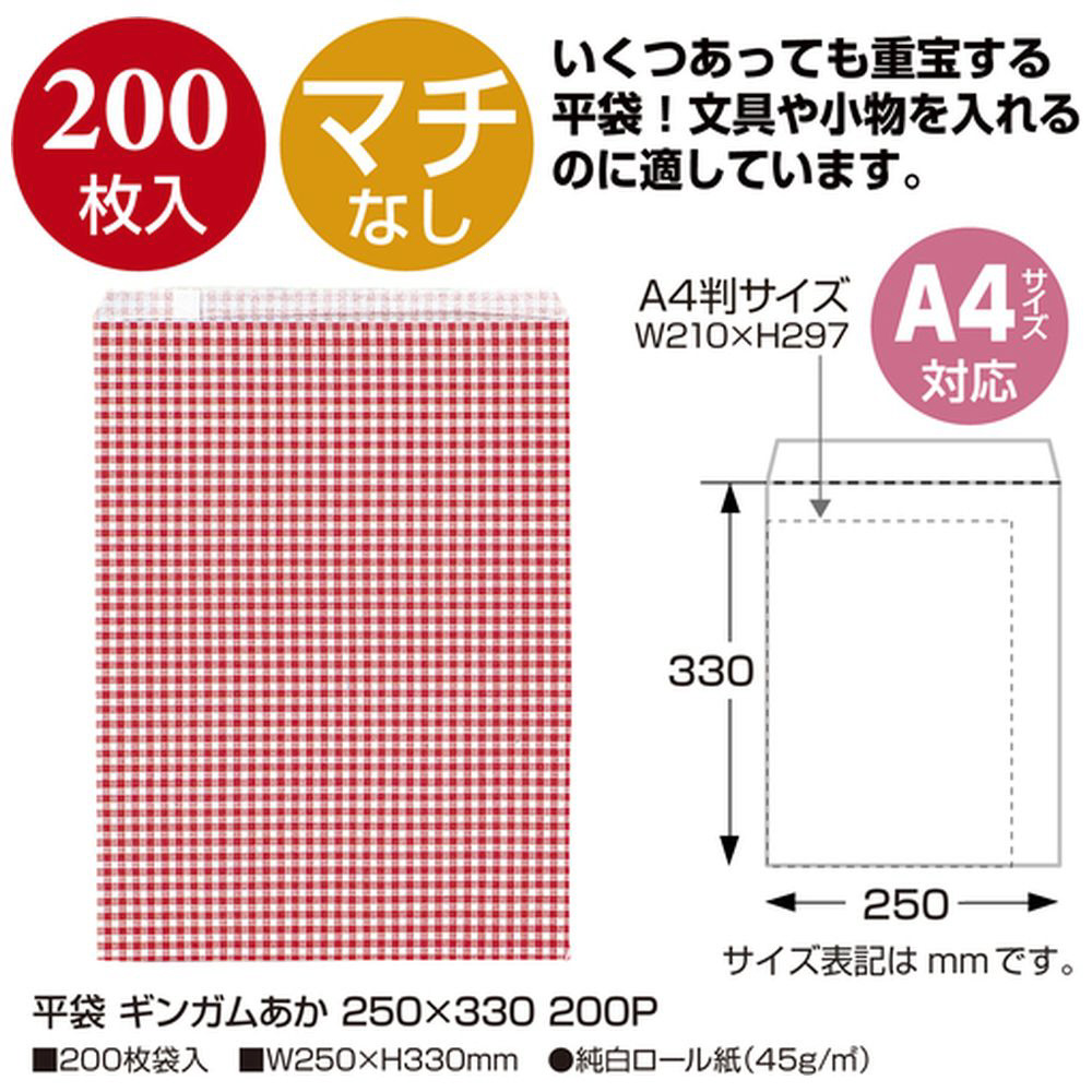 ギフトバッグ 平袋 200枚入 [250×330mm] ギンガムあか 50-1800