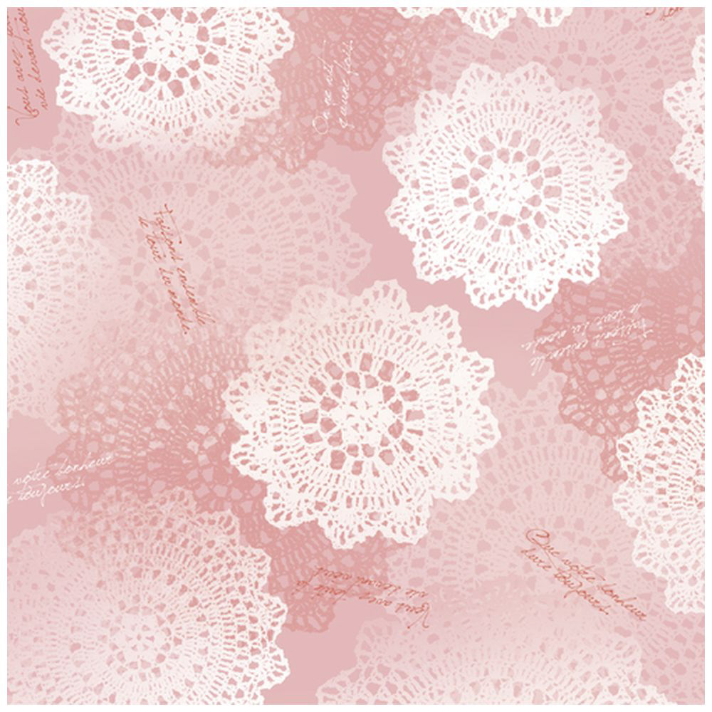 美しいレース柄の包装紙です。ピンクに重ねられたレースのデザインです。