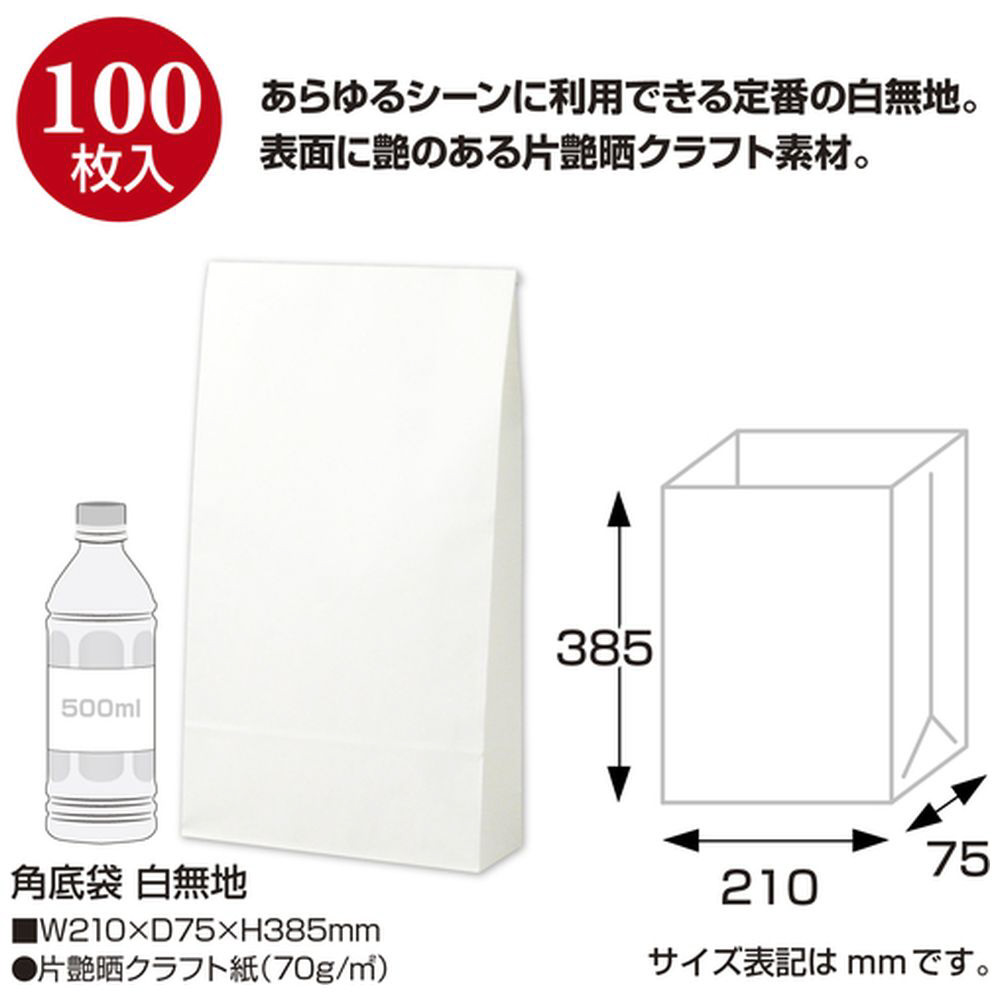 ギフトバッグ 角底袋 100枚入 [210×385×D75mm] 白無地 50-3800