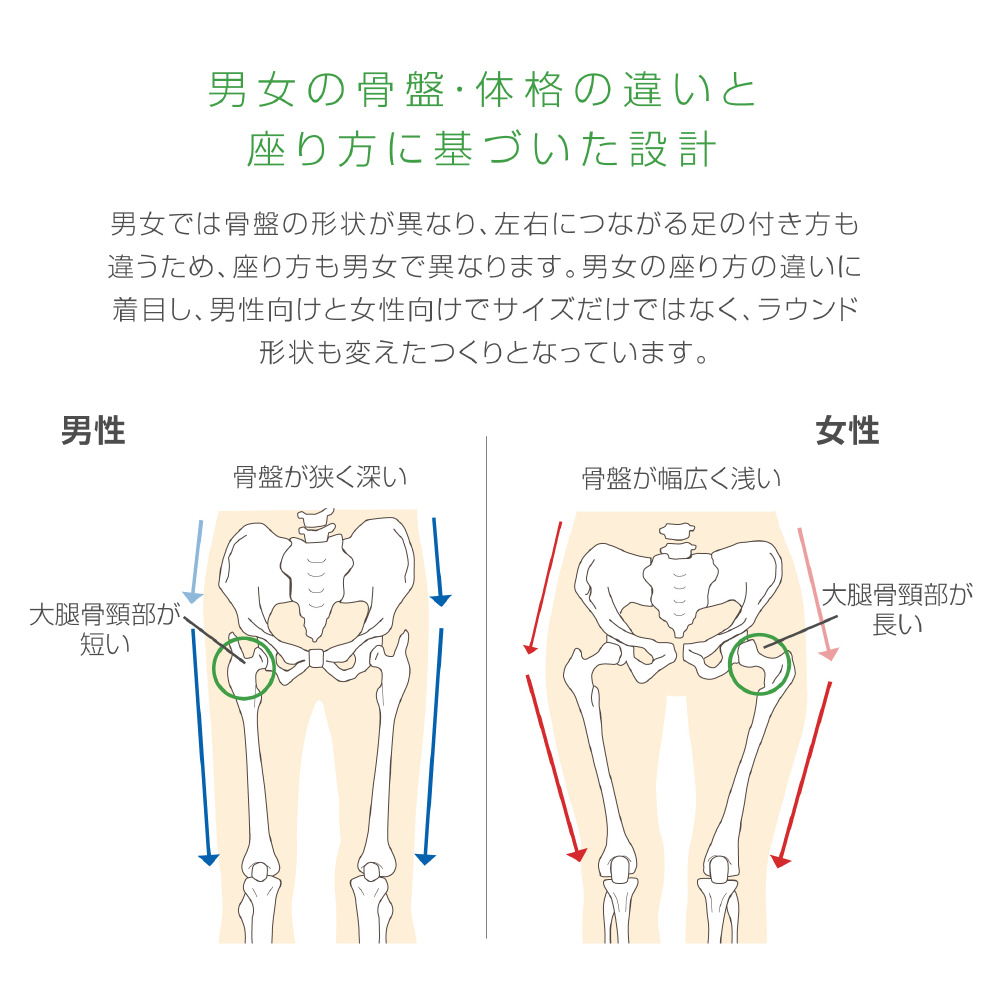 座面のカーブを緩やかにし、圧迫感の無いように設計。性別に関係なく、大柄な方もお使いいただけます。