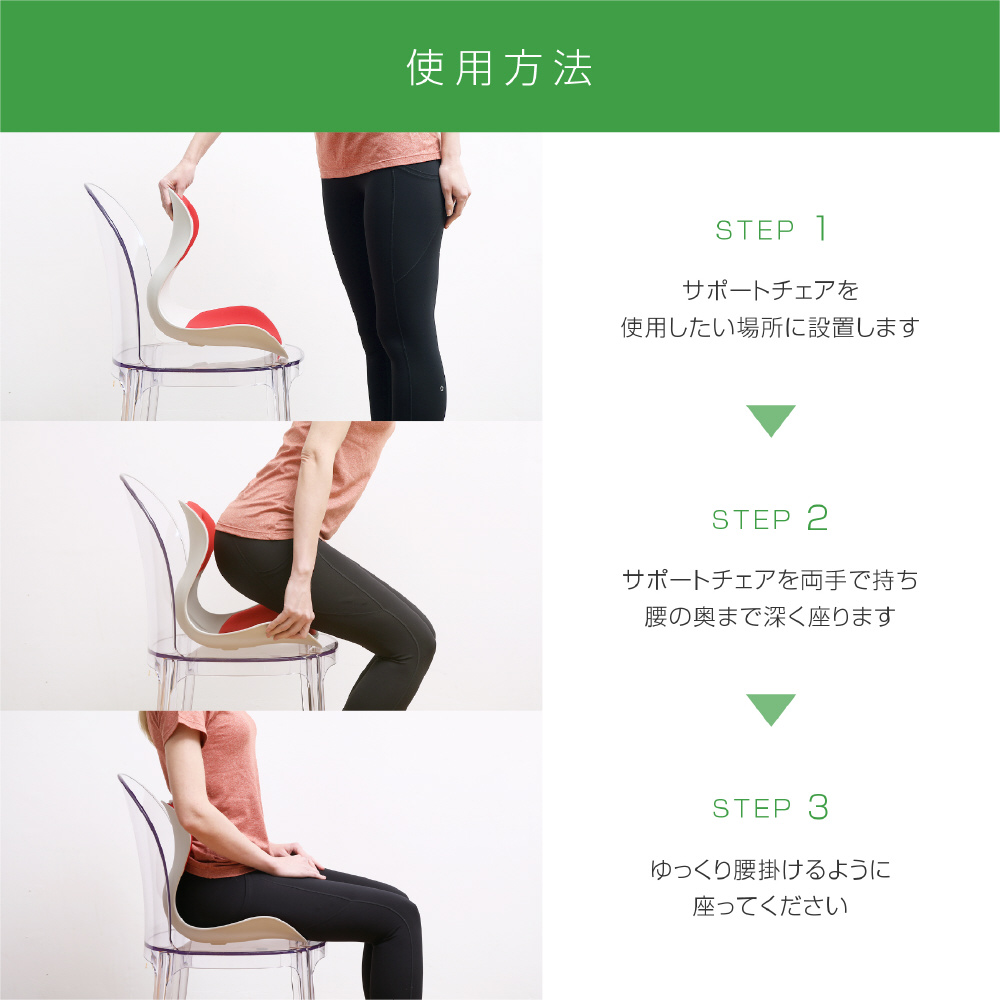 骨盤を支えてしっかりホールド。背骨を正しい状態に保ち、身体にかかる負担を軽減、背筋を伸ばして正しい姿勢へ!