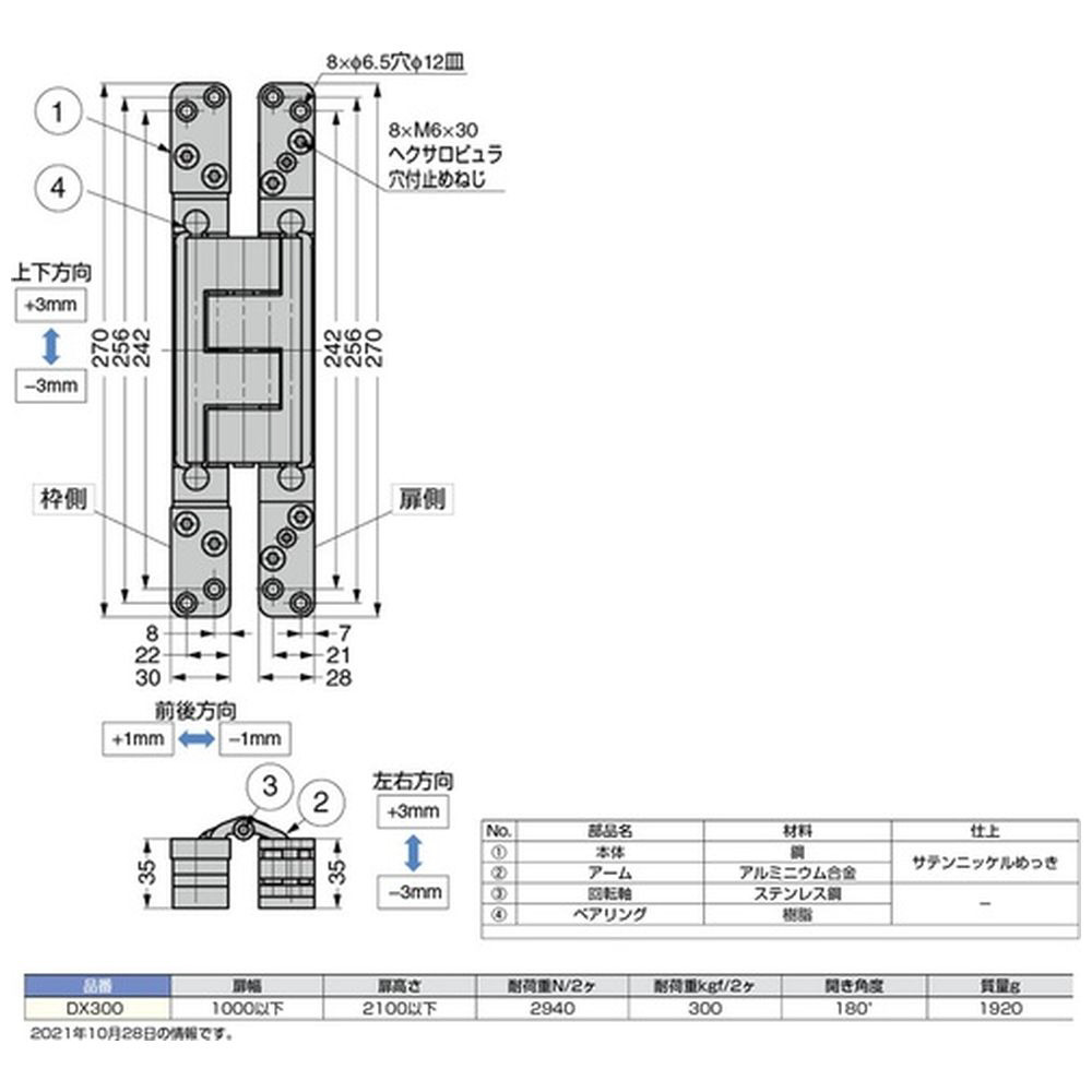 DX300/三次元調整機能付隠し蝶番