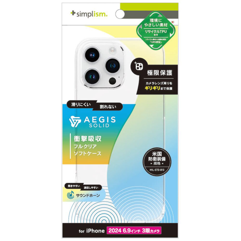 iPhone 16 Pro Max[Aegis Solid] 超精密設計フルカバーTPUケース クリア TR-IP24L3-AGSL-CL