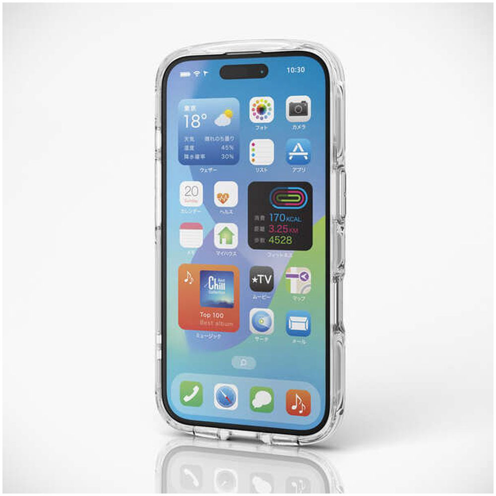 全周に配置した独自設計のエアークッションが衝撃を吸収し、側面に弾力性のあるTPU(熱可塑性ポリウレタン)素材を、背面に高硬度のポリカーボネート素材を使用した、機器本体デザインを損ねないオールクリアタイプのTOUGH SLIM LITEケースです。