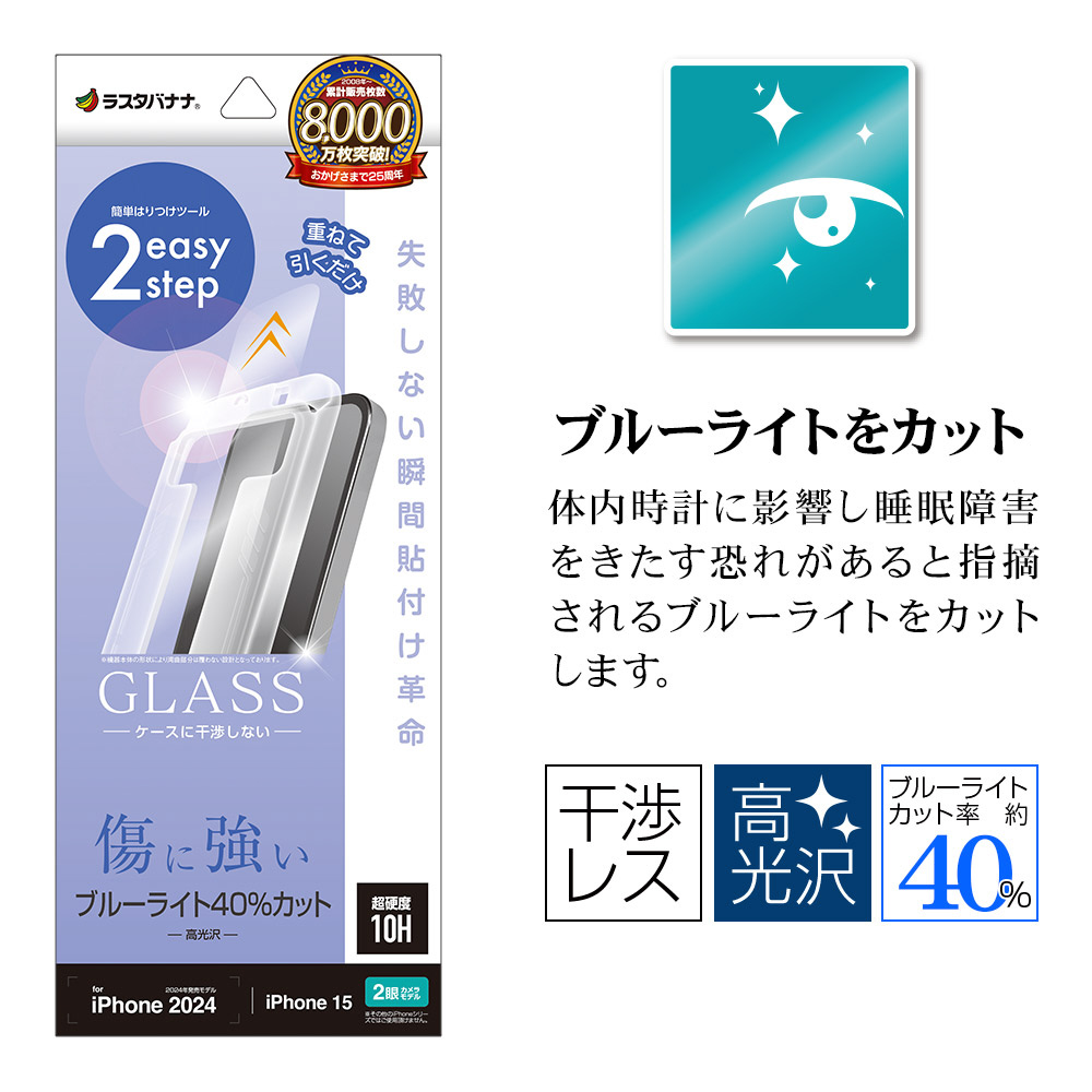 iPhone 16 / 15(6.1インチ) ガラスフィルム 瞬間貼り付け革命 ブルーライトカット 高光沢 MTK4518IP461