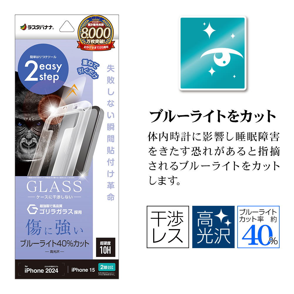 iPhone 16 / 15(6.1インチ) ガラスフィルム 瞬間貼り付け革命 ゴリラガラス ブルーライトカット 高光沢 MTK4522IP461