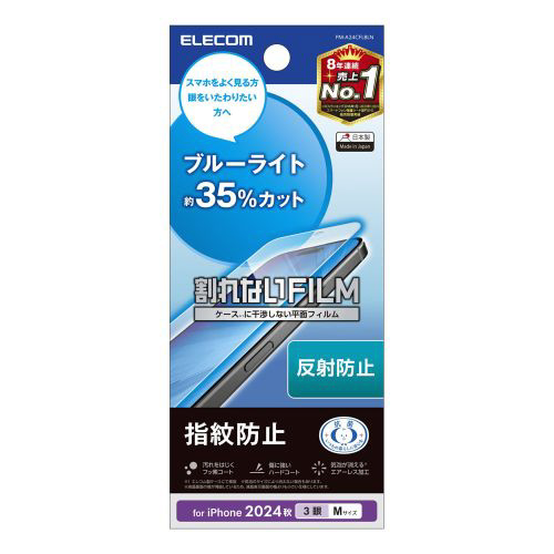 iPhone 16 Pro(6.3インチ) フィルム アンチグレア ブルーライトカット 抗菌 ハードコート 指紋防止 反射防止 マット 気泡防止 PMA24CFLBLN