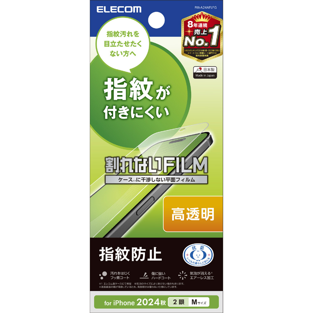 iPhone 16 / 15(6.1インチ) フィルム 高透明 抗菌 ハードコート 指紋防止 気泡防止 高透明 PMA24AFLFG