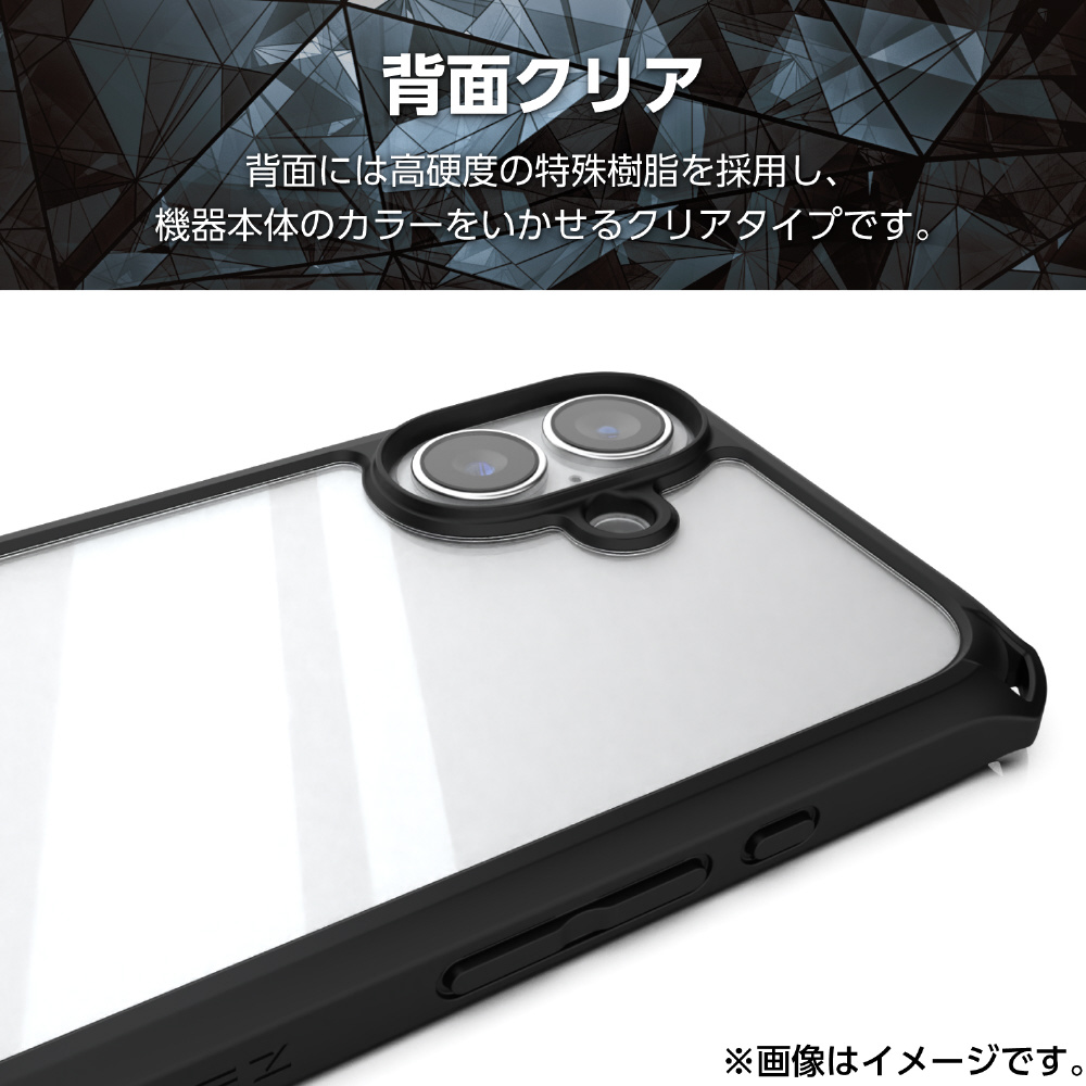 iPhone 16 ケース ハイブリッド カバー 衝撃吸収 カメラレンズ保護設計 ワイヤレス充電可 ストラップホール付 背面クリア 硬度5H フィルム付 ZEROSHOCK ブラック PMA24AZEROFCBK