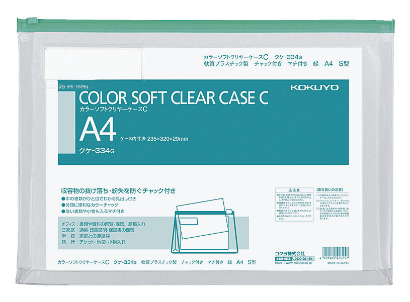 カラーソフトクリヤーケースCマチ付A4 クケ-334G 緑