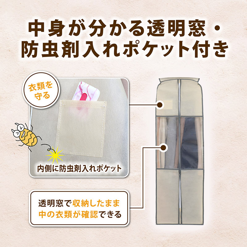 【センターファスナー・透明窓・防虫剤入れ】
