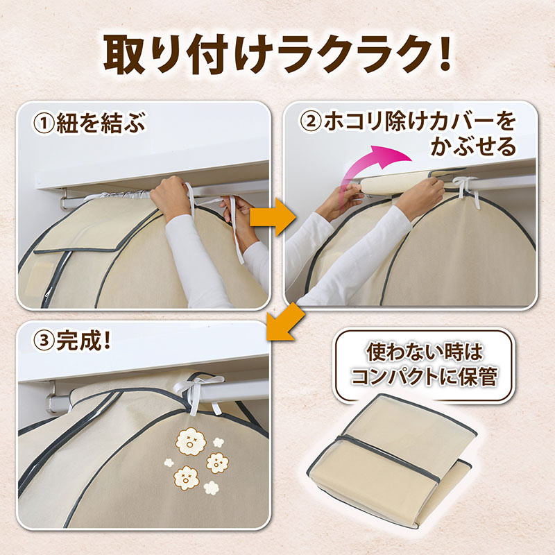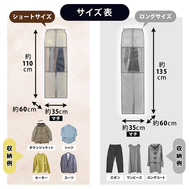 オフシーズンの洋服をまとめてホコリなどの汚れから守ります。5〜7枚までの衣類の保管が可能。