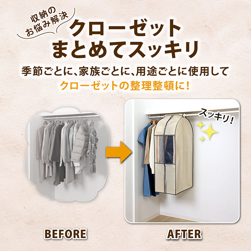 クローゼット衣類カバー ベージュ S 131-25N
