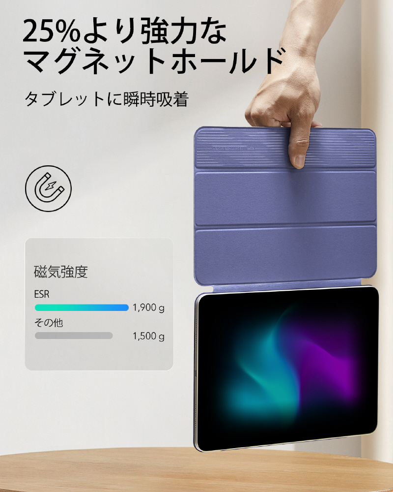 13インチiPad Pro(M5/M4)用 マグネットケース 三つ折りスタンド ESR Rebound Magnetic iPad Pro 13 M4 ラベンダー