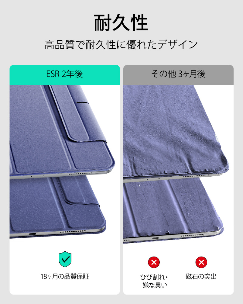 ESR iPad Pro 13インチ ケースM5(2025)、M4(2024)専用 強力マグネット吸着式のスリムな三つ折りスタンドケース