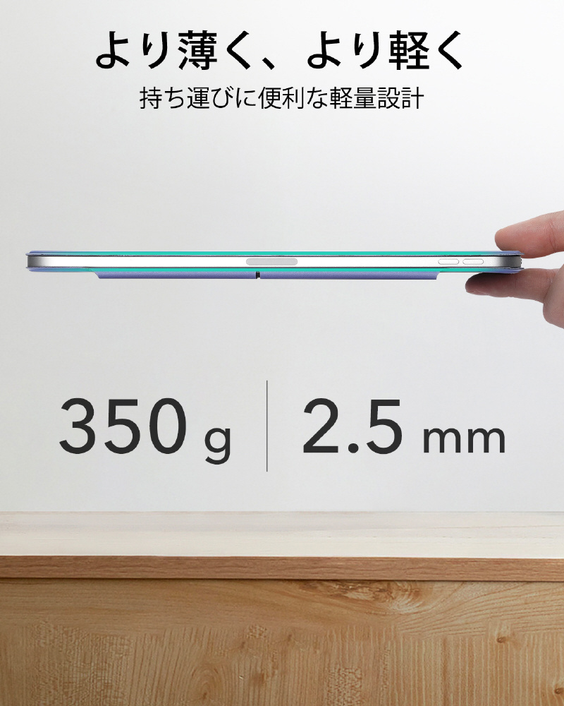 持ち運びに便利な軽量設計で、閲覧、タイプ、手書き用に前面カバーを安定したスタンドとして活用できます。