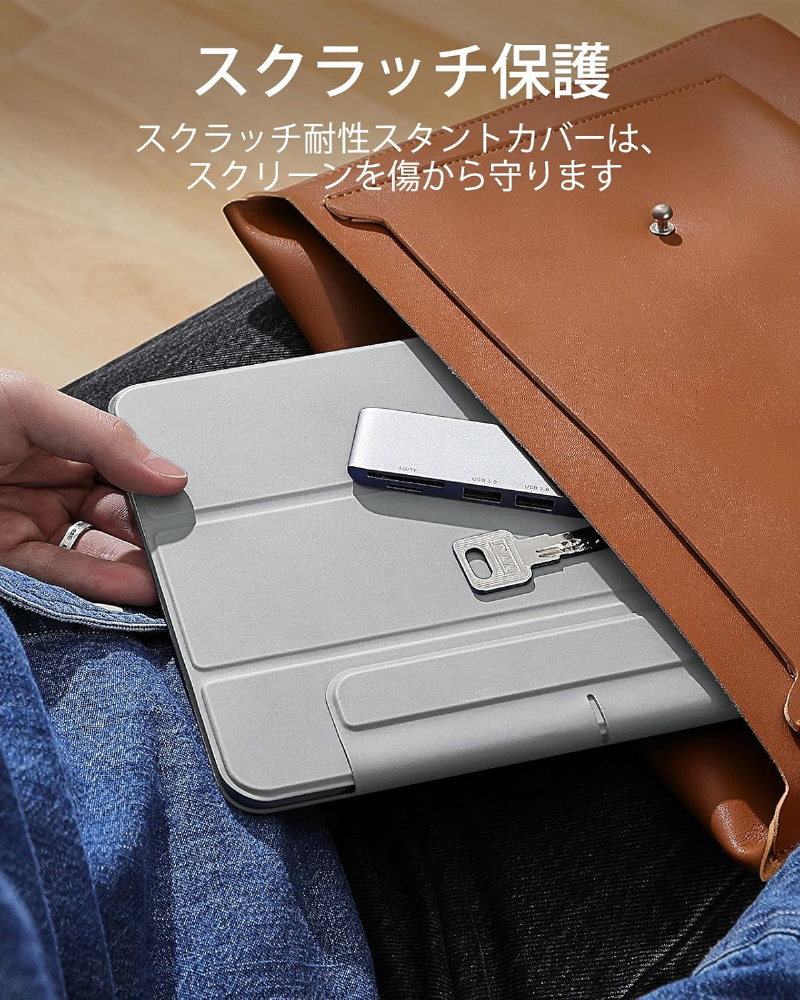 持ち運びに便利な軽量設計で、閲覧、タイプ、手書き用に前面カバーを安定したスタンドとして活用できます。