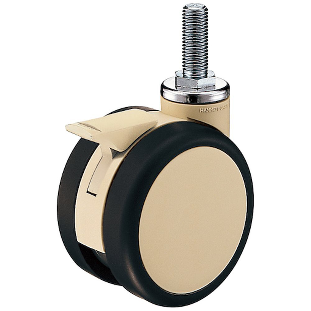 本体に樹脂(ナイロン)を採用し、車輪幅を広くとることにより旋回性能と走行安定性に優れたねじ込み双輪キャスターです。