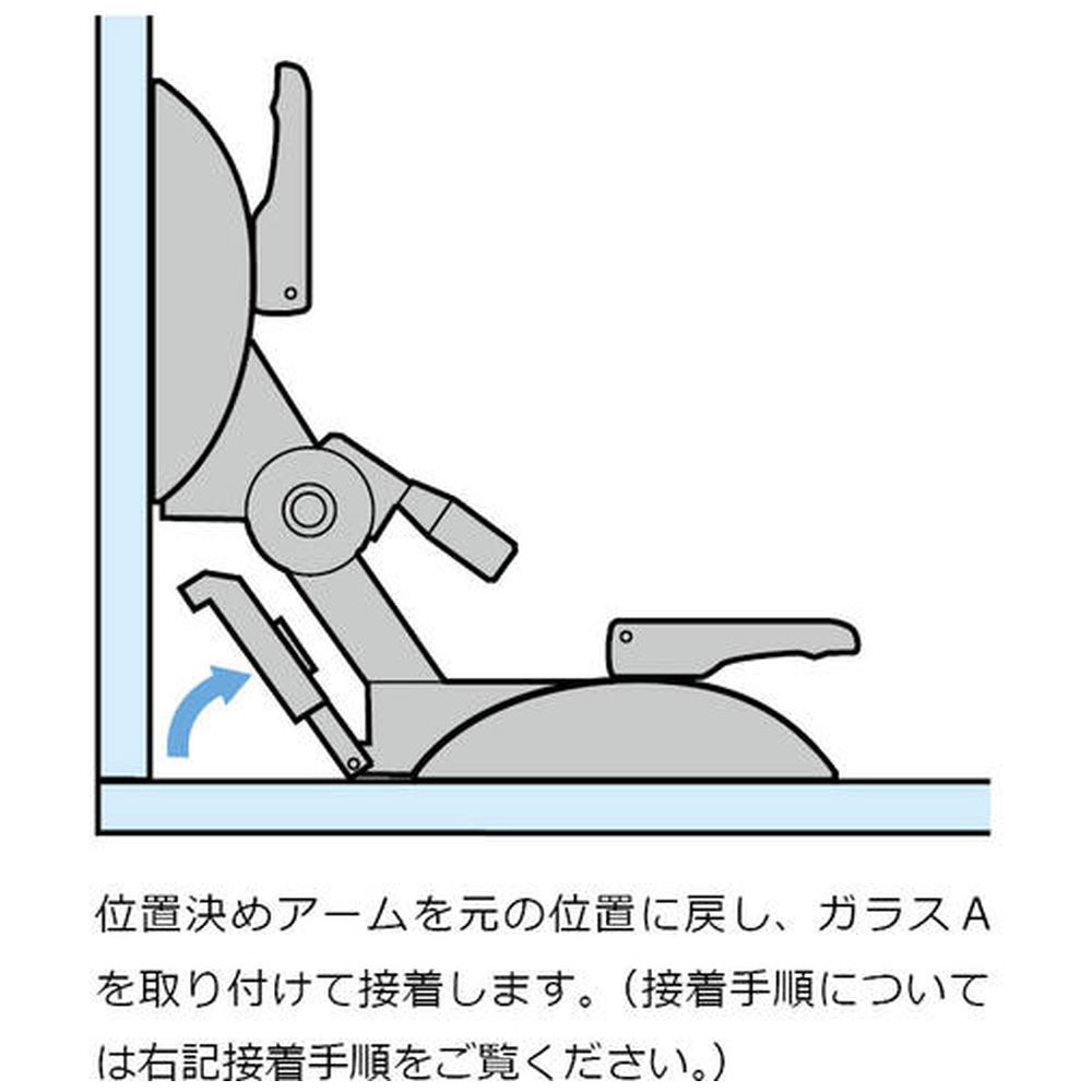 ■つまみ[1]やハンドル[2]の操作によって、ガラスの接着面の間隔が簡単に微調節できます。