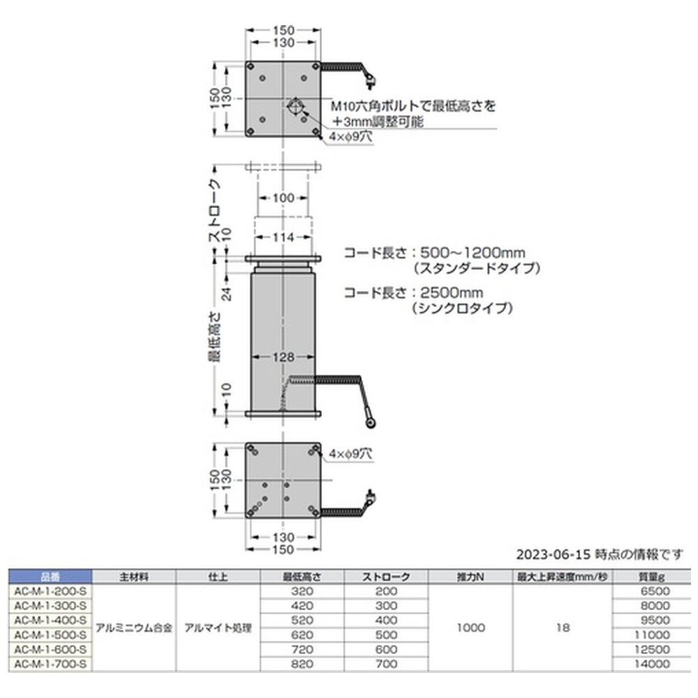■別注にて推力2000N(最大上昇速度12 mm/秒)、3000 N(最大上昇速度8 mm/秒)もご用意できます。