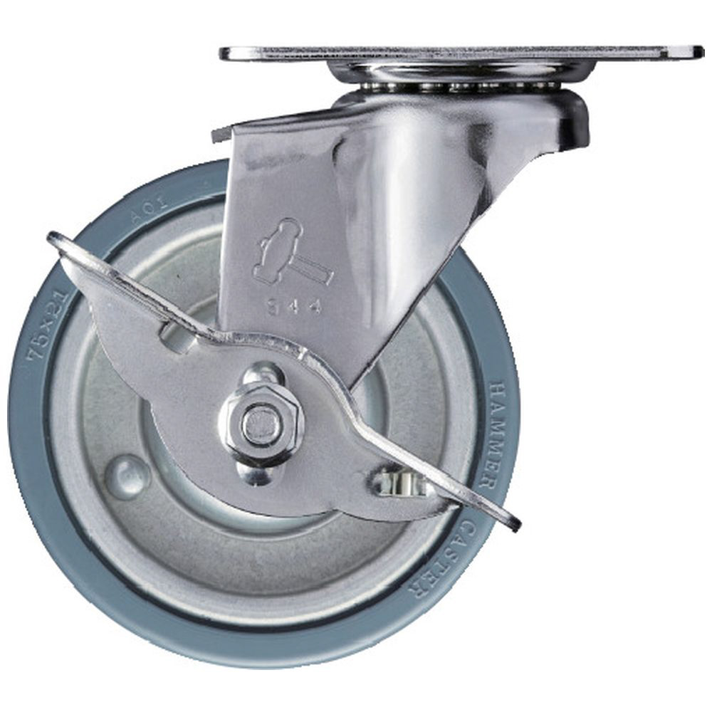 プレート式キャスター 自在(ストッパー付) ゴム車