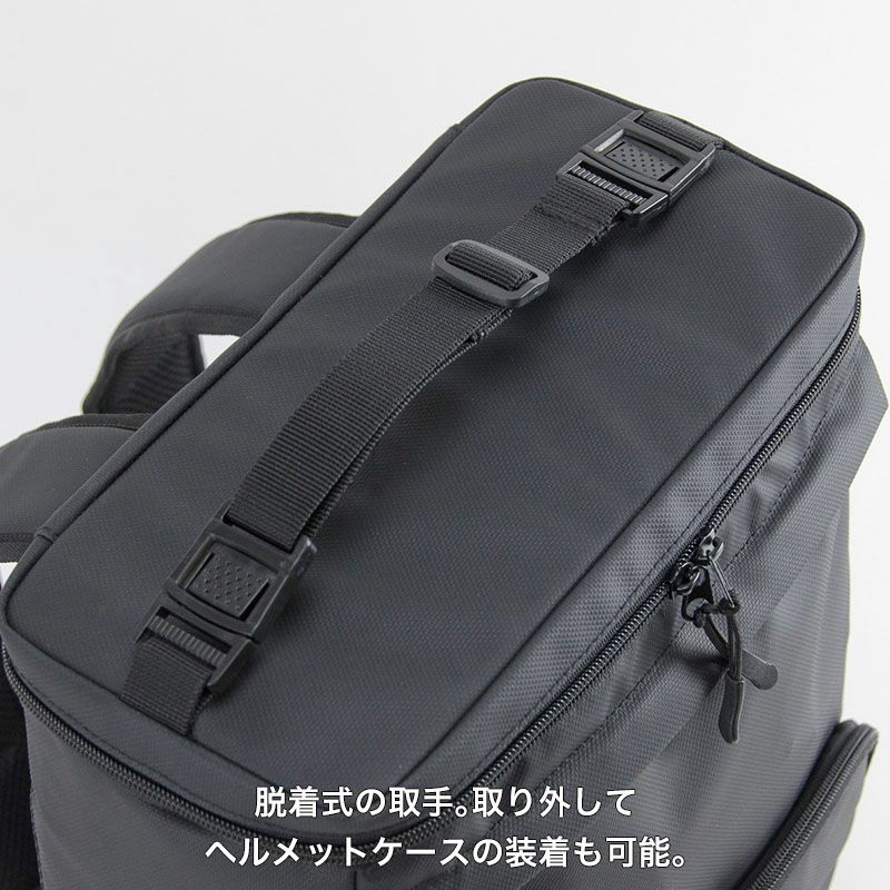付属のメッシュ素材のヘルメットケースは、本体上部に装着ができます。