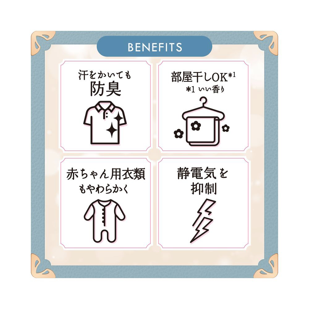 高級ホテルタオルのような、ふわふわシフォンにヨレ・毛玉も防ぐ*1汗をかいても防臭部屋干しOK*2赤ちゃん用衣類もやわらかく静電気を抑制約2.3ヶ月分^1。