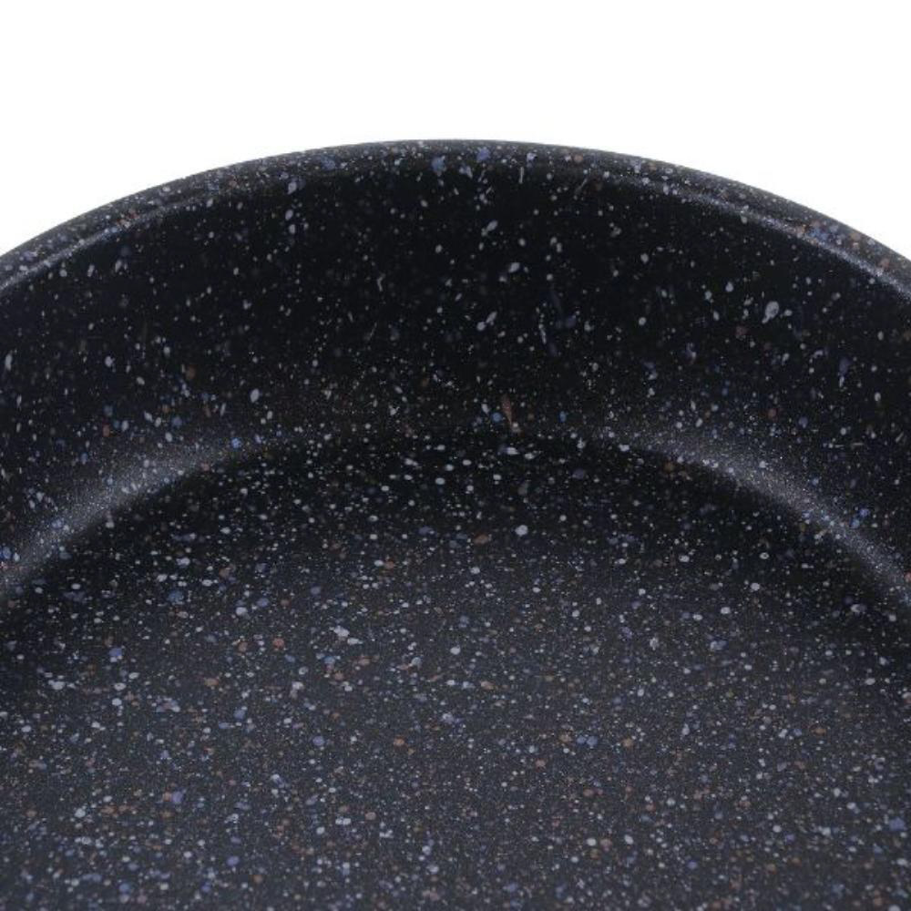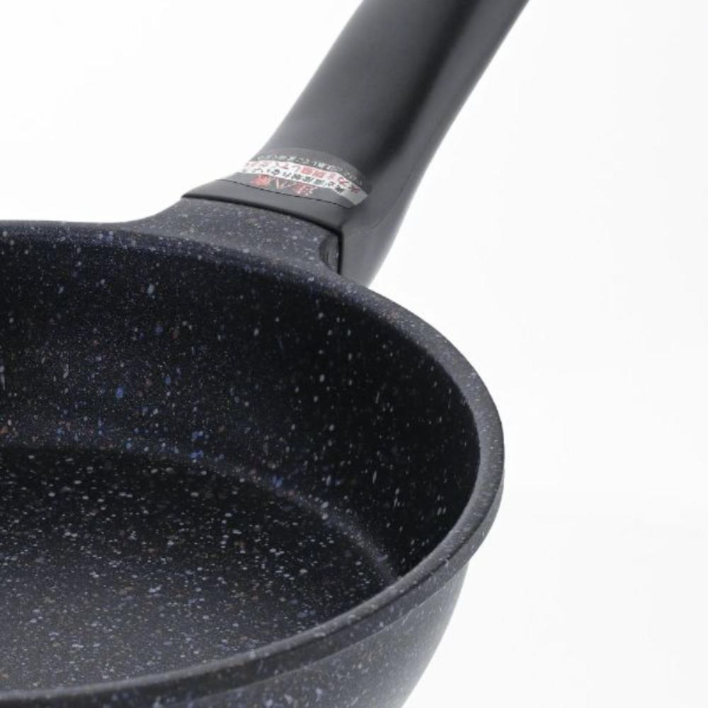 内面はふっ素樹脂塗膜加工、ダイヤモンドコート、マーブルコートの3層構造で、こびりつきにくくなっています。