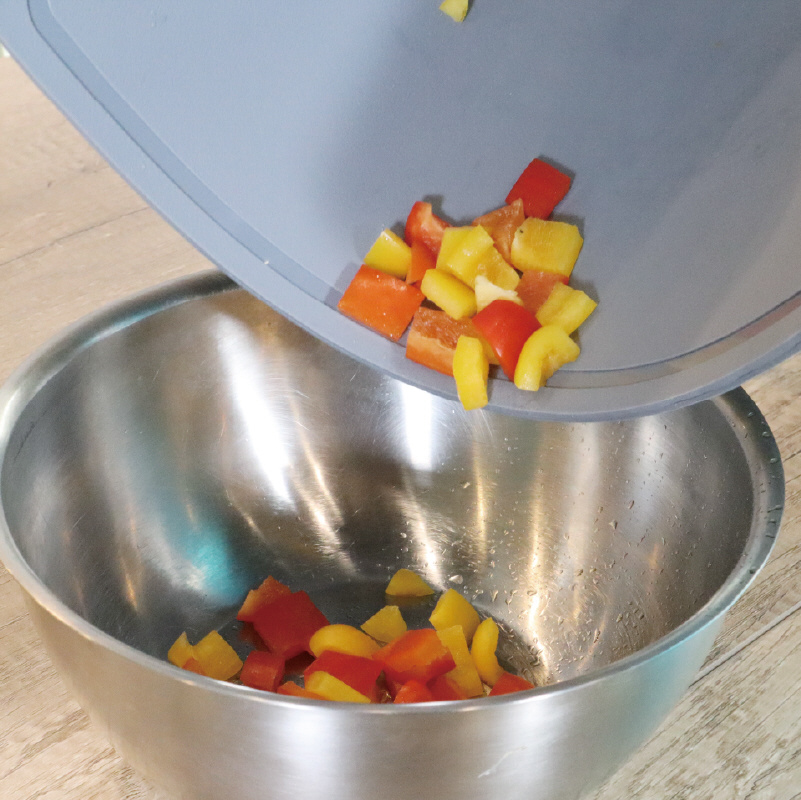TPU素材の弾力性で包丁の刃を保護するまな板。 軽く、衛生的で、使い勝手も抜群です。