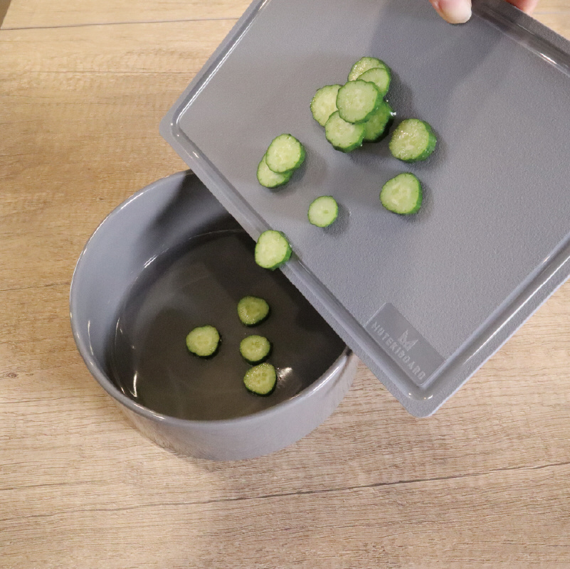 TPU素材の弾力性で包丁の刃を保護、熱湯消毒も可能な衛生的で使いやすいまな板です。