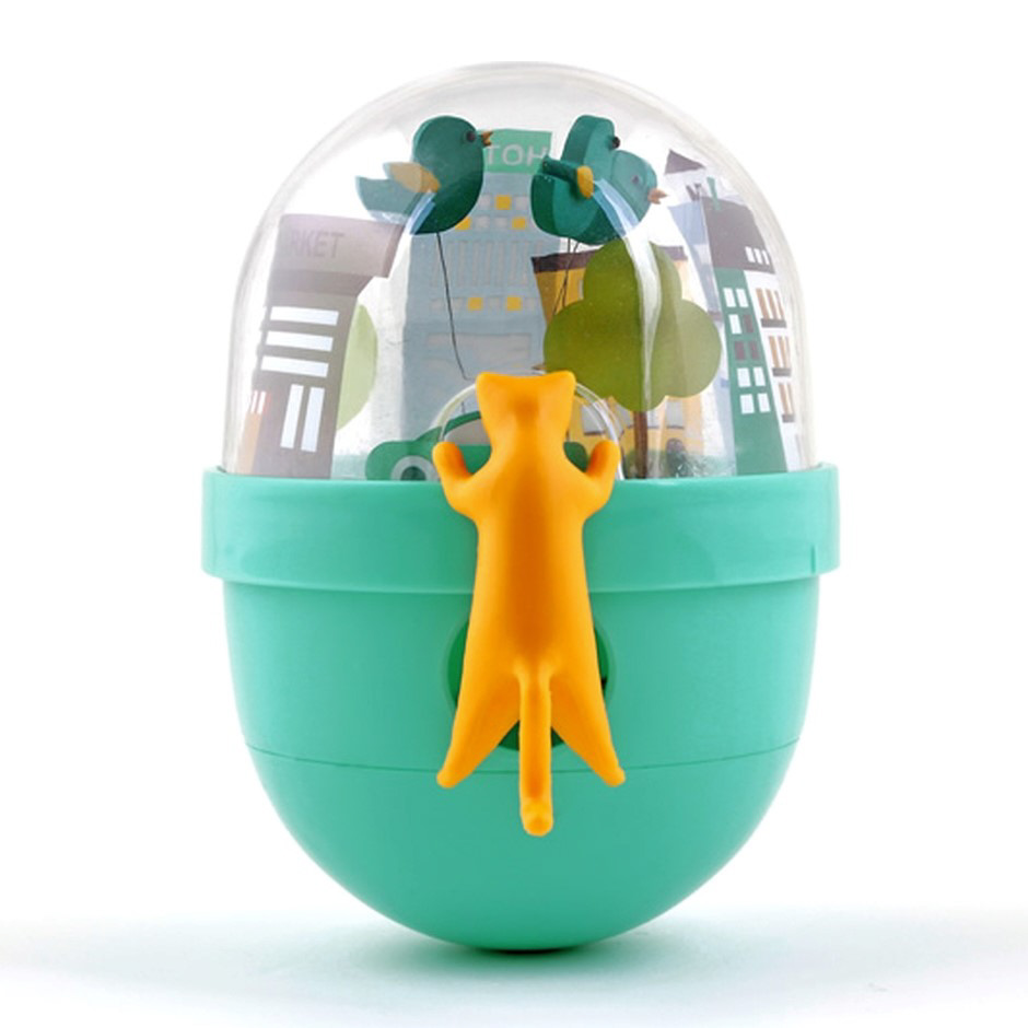 起き上がり小法師のようにグラグラと揺れるおもちゃです。中にはフードを入れることもできますので、知育おもちゃとして、そしてゆっくりフードを食べさせるスローフィーダーとして、様々な使い方ができるユニークおもちゃです。