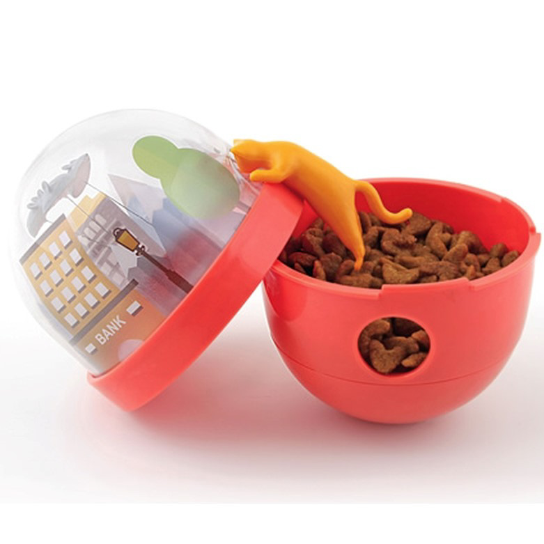 起き上がり小法師のようにグラグラと揺れるおもちゃです。中にはフードを入れることもできますので、知育おもちゃとして、そしてゆっくりフードを食べさせるスローフィーダーとして、様々な使い方ができるユニークおもちゃです。