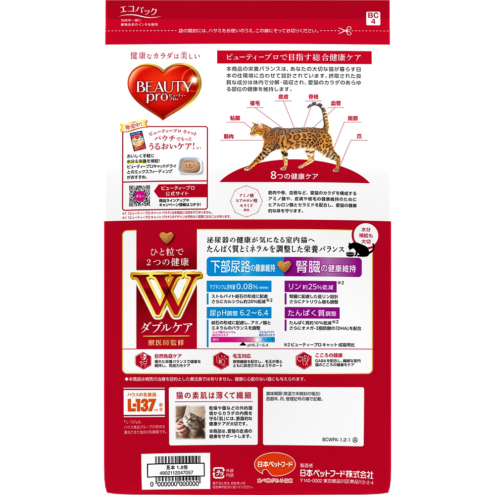 ビューティープロ キャット Wケア 下部尿路・腎臓の健康 1.2kg