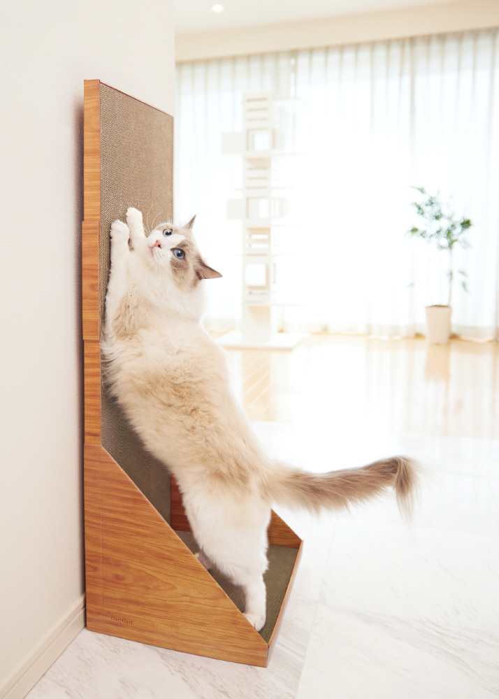 ・高さがレギュラーサイズの約1.4倍のロングサイズ100cm、幅も少しゆったりサイズ。愛猫が立ったまま背伸びして使える、壁面設置型スタンディングタイプです。
