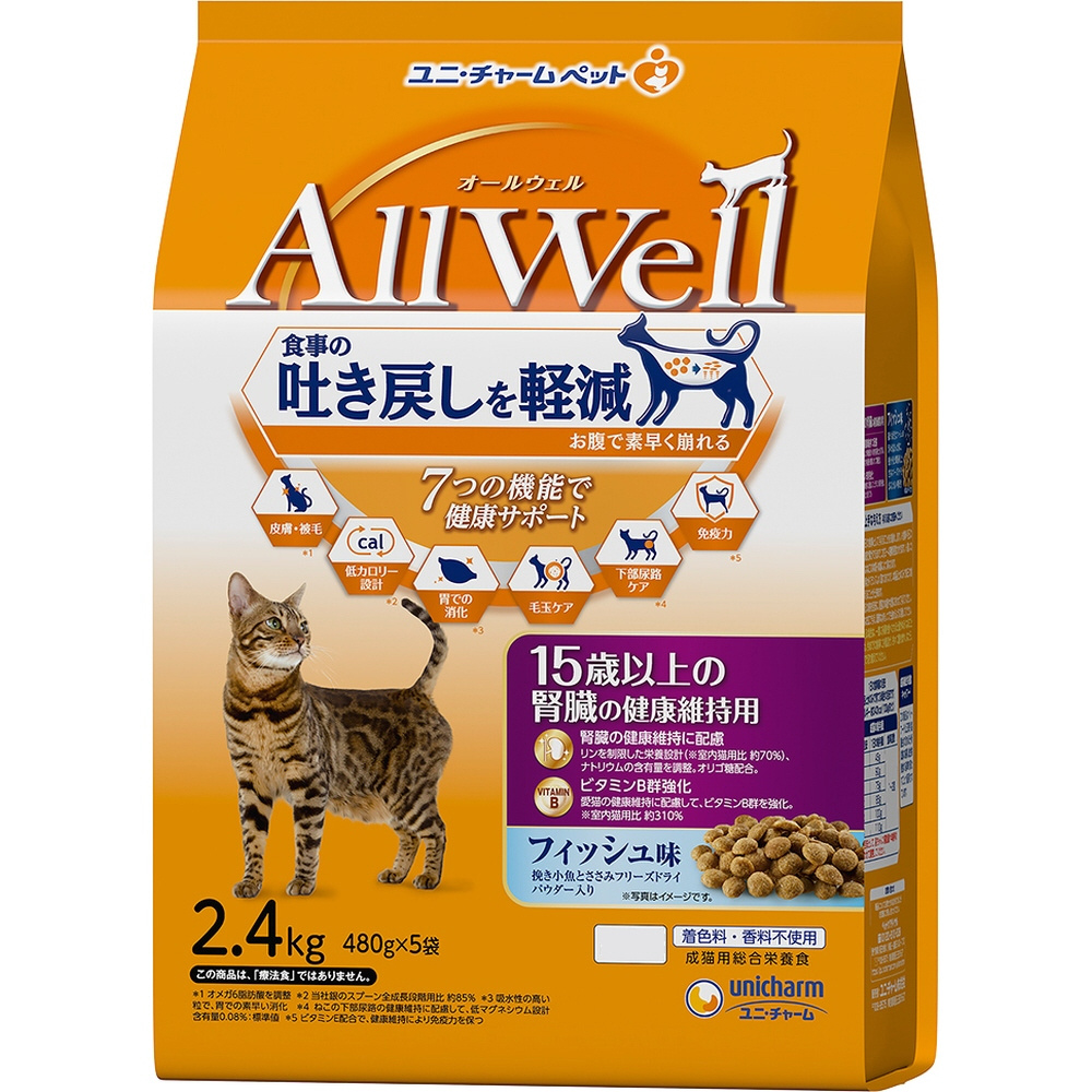 AllWell 15歳以上の腎臓の健康維持用 フィッシュ味 挽き小魚とささみフリーズドライパウダー入り 2.4kg(480g×5袋)