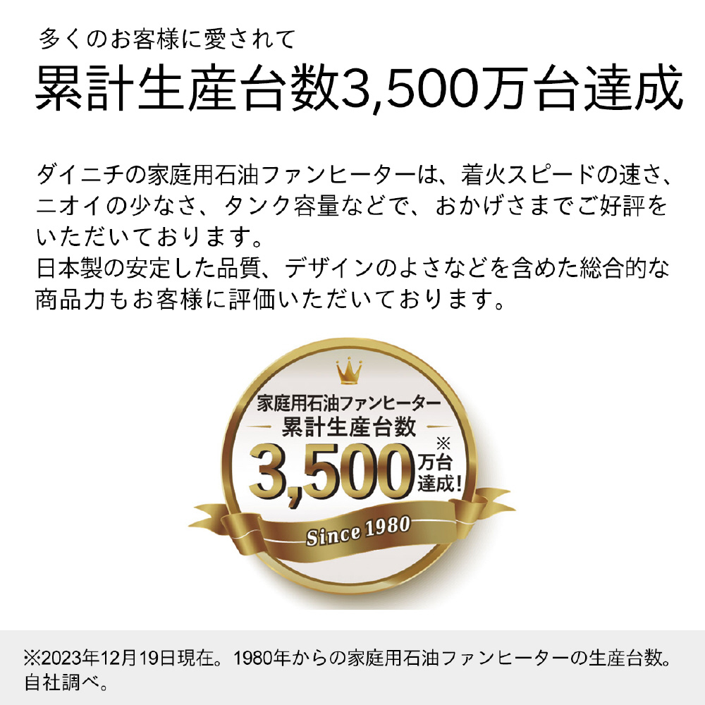 安全機能 不完全燃焼防止装置、対震自動消火装置、停電安全装置、過熱防止装置、燃焼制御装置、点火安全装置、消し忘れ消火装置、気密油タンクの給油時消火装置