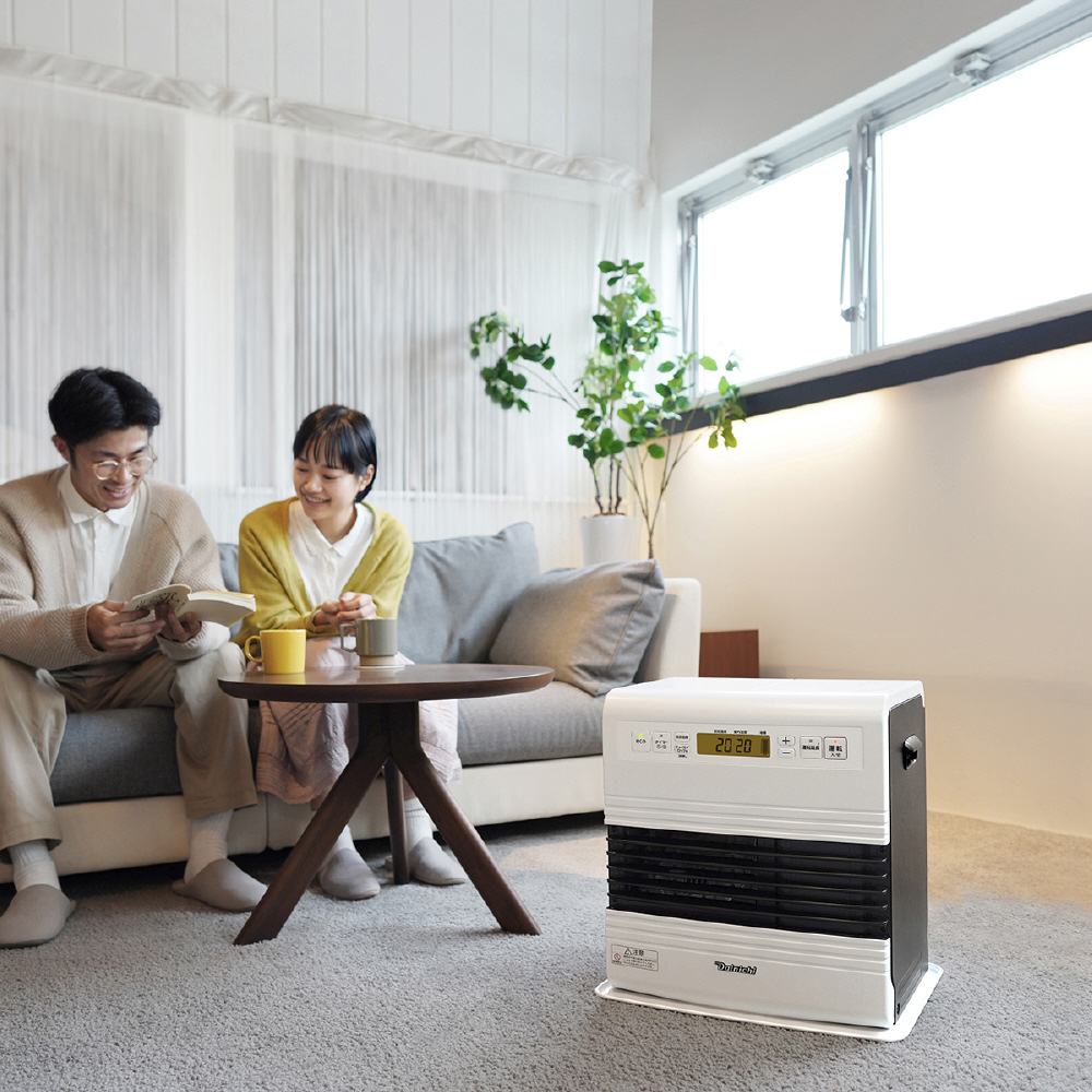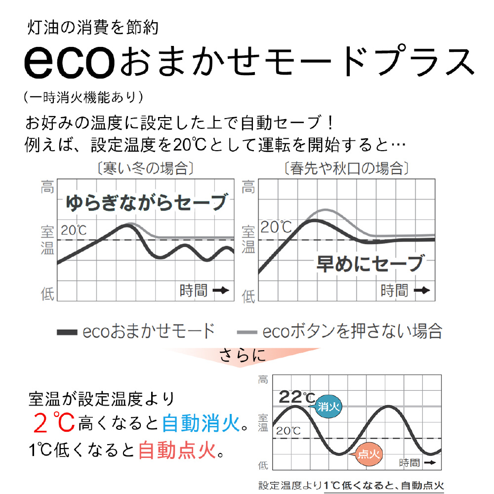 設定温度プラス2℃で自動消火、マイナス1℃で自動点火。快適温度を保ちながら灯油を上手に節約します。